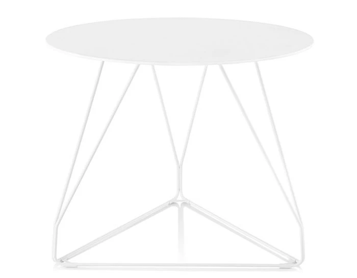 In their expression of pure geometry, Polygon Wire Tables provide an elegant solution to the need for all manner of surfaces, at home, the office, and elsewhere. The structure of the table’s wire base yields a dual advantage: a symmetry of form that uses minimal material for maximum strength and a logical method for scaling up or down in size and height to accommodate various dimensions of round, triangle, and hexagon tops of painted Formcoat. By unifying the color of base and top-in your choice of several options-a single table has a subtle appearance, and a gathering of nested tables creates an organic composition.