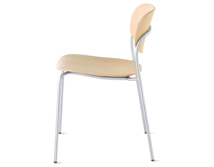 Portrait’s sinuous lines and universal forms bring forth the freer, more poetic aesthetic characteristic of Norwegian design. The geometry of the chair is naturally generous and comfortable. Precise execution and refined details present a new twist on a familiar typology of a metal-framed chair with wood seat & backrest. Also offered with an upholstered seat or fully upholstered and with arms. Ganging option can be specified by calling the hive showroom. Stacks up to five chairs high.