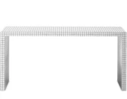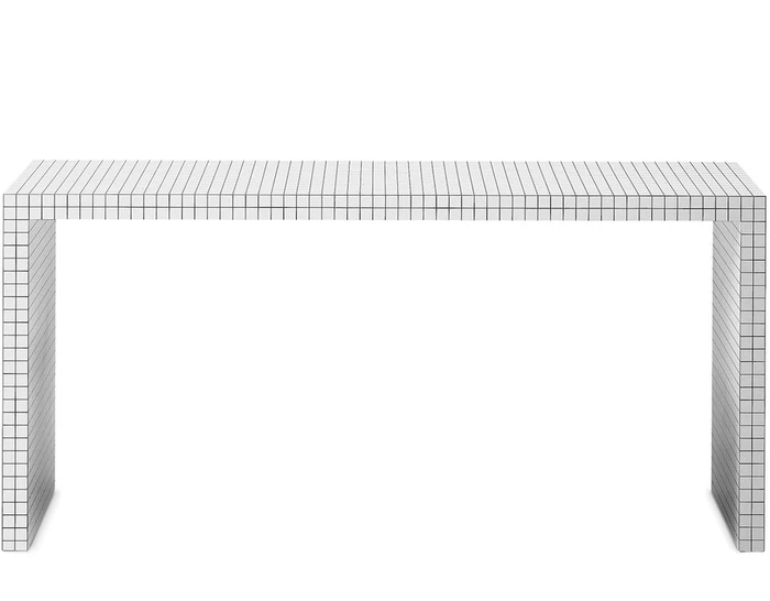 Quaderna console table features a honeycomb core structure coated with white plastic laminate, silk-screen printed with black squares at 1.2″ spacing. The Quaderna family consists of various furniture elements for around the house or office. Even though the Quaderna was designed in 1970, the pieces are as contemporary today as they were when first produced and fit nicely into any setting.