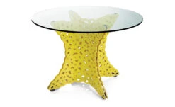 Topiary is the only 100% sheet metal seating collection on the market, using a technique that involves bending, stamping and folding sheets of aluminum. The powder coated components make the chair resilient enough to stay outdoors all year round. The topiary table base is fitted with wheels for easy transportation and the glass top is offered in three sizes. Optional powder coated umbrella support with weight accepts 1/24″ dia. umbrella shaft.