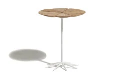 The Petal collection features an aluminum and stainless steel base and stem powder-coated in a variety of colors. The top petals are offered in either white machined HDPE (High Density Polyurethane) or vertically grained Teak with a natural finish. The collection is completed by the coffee and dining tables. Suitable for the outdoors. Please note: Teak will weather and acquire a silvery tone if left outside in the elements.