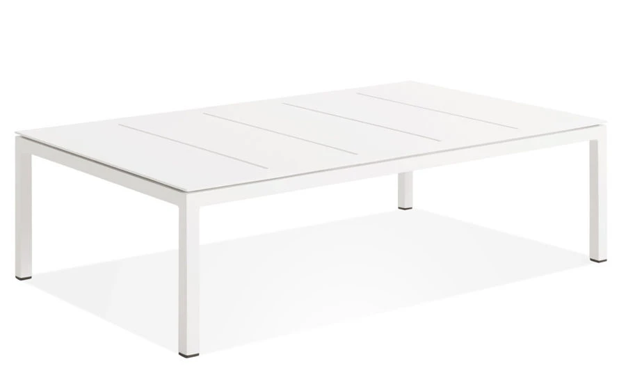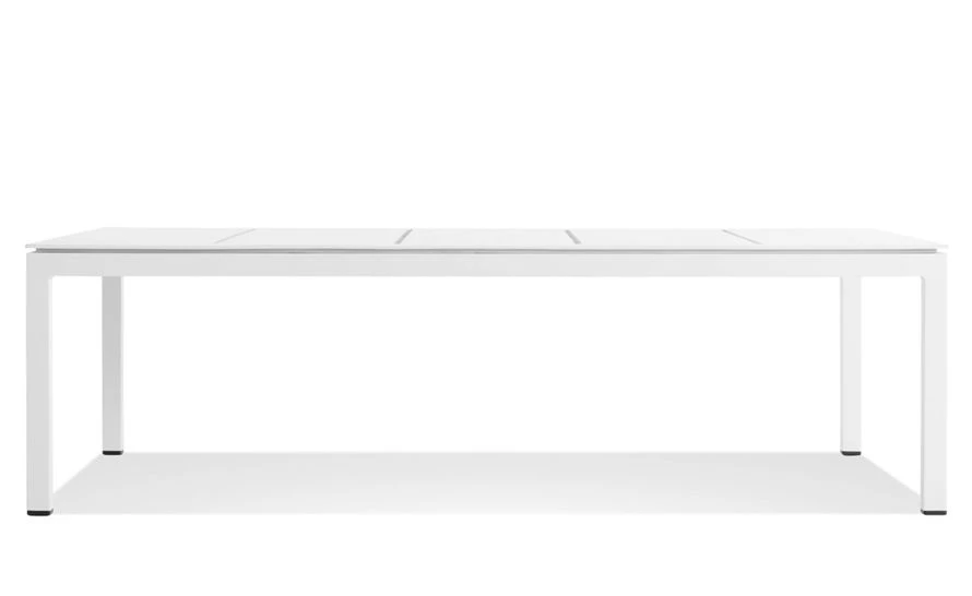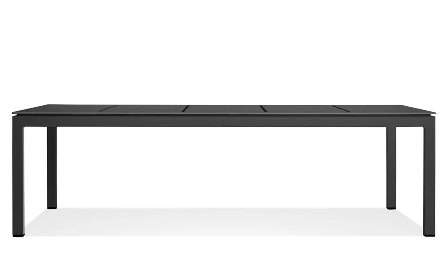 Crisp minimal powder-coated aluminum frame and top. The entire Skiff collection offers clean lines designed to weather the elements.