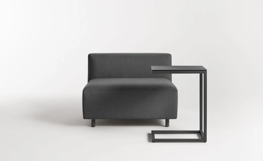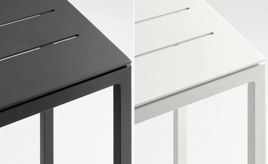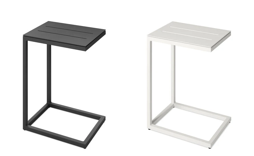 Make your cocktail, sunglasses and steamy beach read come to you. Crisp, cantilevered top lets you keep warm weather accoutrements close at hand. Minimal powder-coated aluminum adds class to the whole laidback situation. Perfect for those who have zero plans to get up anytime in the near future.