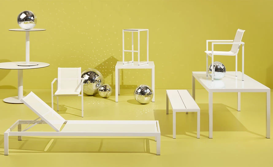 Don’t forget to rub the lotion on your skin. The Skiff Outdoor Stacking Chair features a crisp and minimal powder-coated aluminum frame and Batyline textile. The Batyline mesh is mildew, rot and tear resistant. The entire Skiff collection offers clean lines designed to weather the elements.