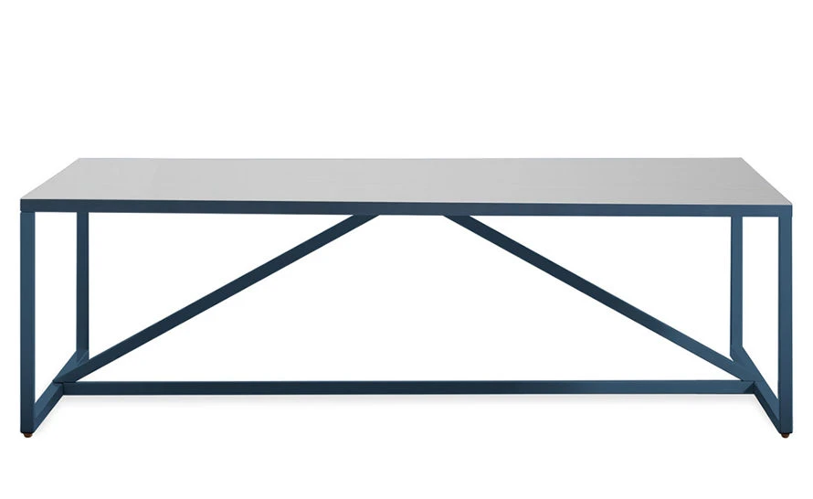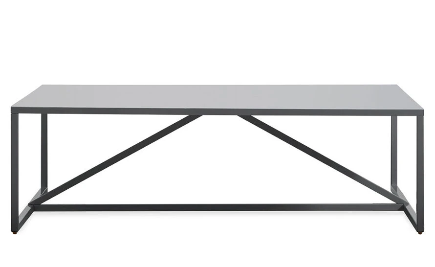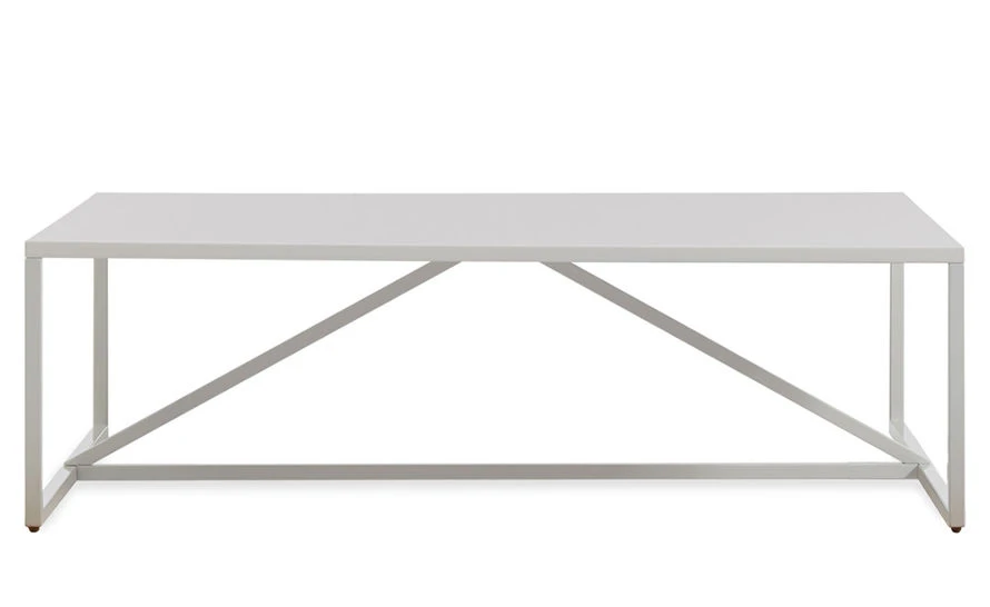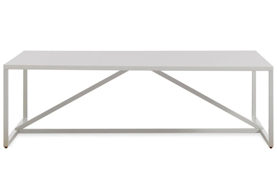 Structure and design are one with the Strut. A proud stance for any gathering. Choose ivory for a subtle impact. Powder-coated steel frame with a durable polyurethane finish over MDF for the top.
