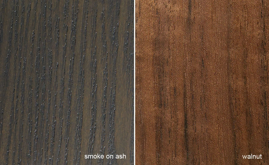 * Smoke on Ash: Ash veneer with smoke finish over engineered wood, solid walnut legs