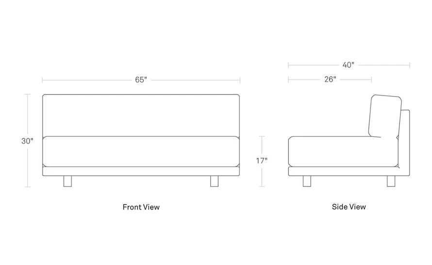 sunday armless sofa: 65″ w | 30″ h | 40″ d | seat: 17″ h | 65″ w | 26″ d