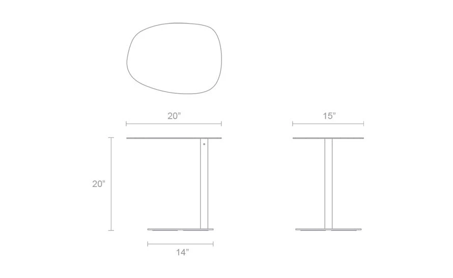20″ h | base: 14″ dia. | top: 20″ w | 15″ d
