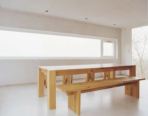 Considered a design classic, the TA04 Bigfoot has become an identifiable icon for e15. The table top is made of seven or eight 40 mm (1 5/8 inch) thick boards. The solid wood legs always include the centre of the tree. The square legs measure 135 x 135 mm (5 1/4 x 5 1/4 inch) and intersect with the table top featuring the end grain with its annual rings. During the seasoning of solid wood, the legs form their characteristic cracks, which make every table unique. The supporting substructure provides a clearance underneath of 625 mm (24 5/8 inch). It is assembled from three parts.