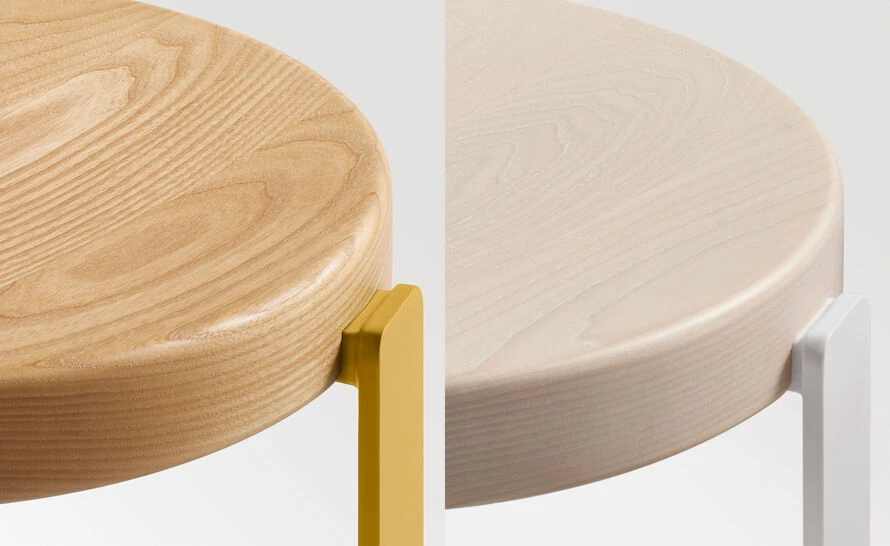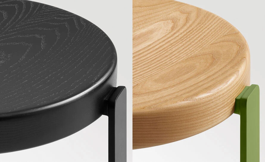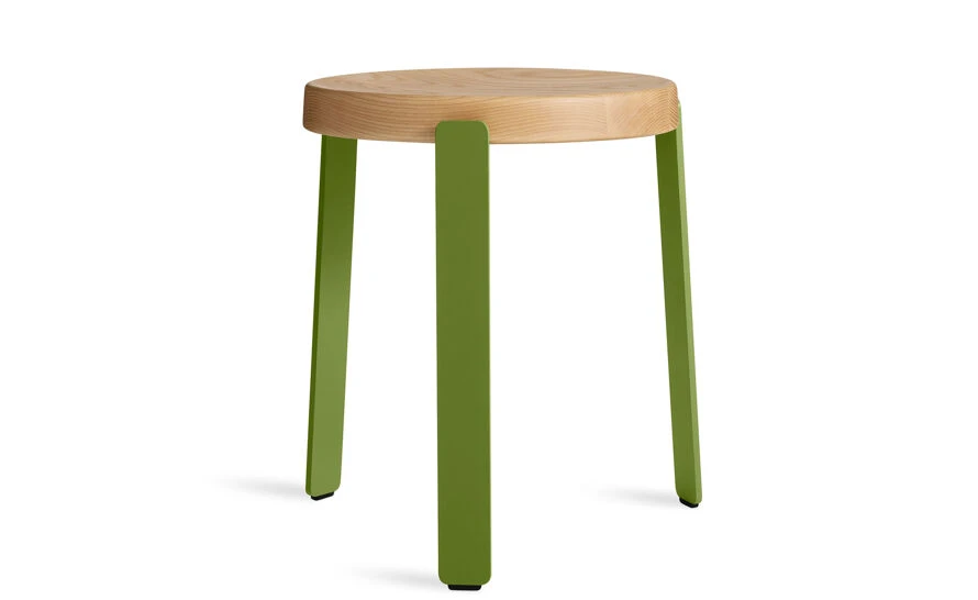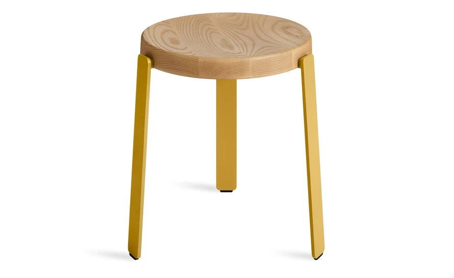 Sit your butt down. Powder-coated steel legs grip a chunky wood top to form a subdued silhouette and a simple stool that works wherever. Three legs provide a sturdy tripod of color and delight. Stackable and practical.