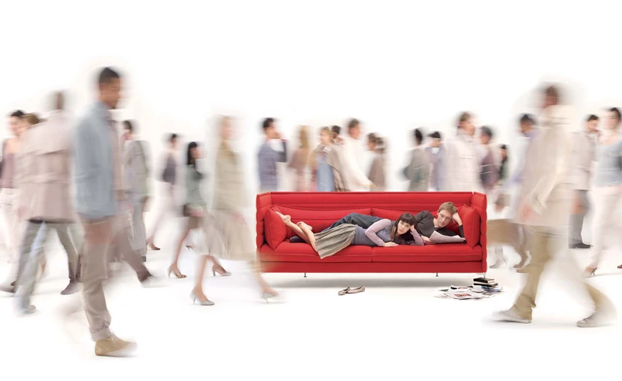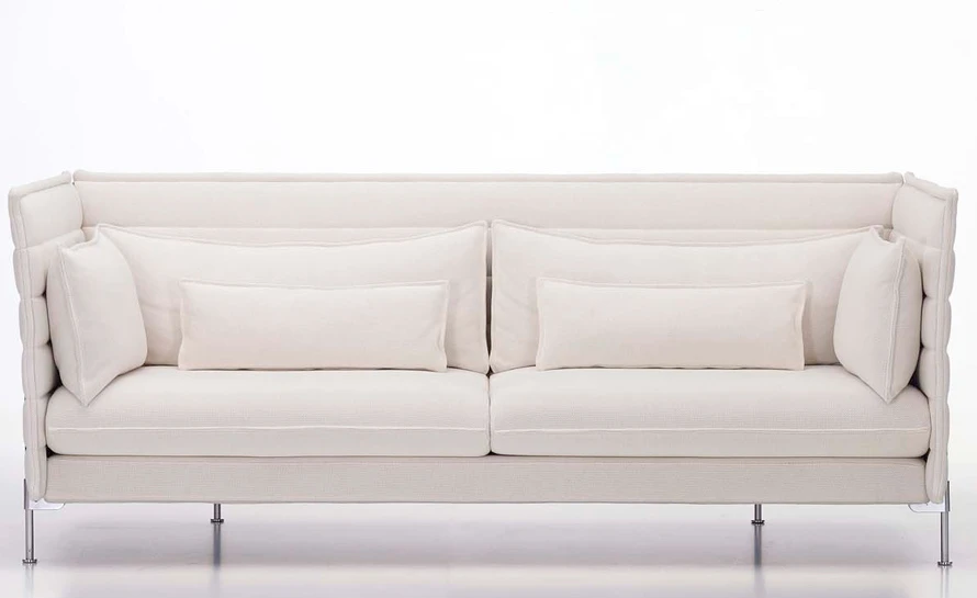 A sofa can go beyond being merely a piece of furniture and become a room of its own within a room – this was the idea that prompted Ronan and Erwan Bouroullec to design the Alcove Sofa. With its unusually soft seat and backrest upholstery, as well as the high, flexible side and back panels, Alcove Sofa creates the frame for a comfy, safe and secure world, a place for relaxed withdrawal from the hustle and bustle of life: Two people can stretch out and sit opposite each other, leaning leisurely back against the side walls, and if required the sofa also provide sufficient space for a third person. Alcove Sofa combines the contrasting qualities of a comfortable secluded relaxation area with an open invitation to enter and sit down.
