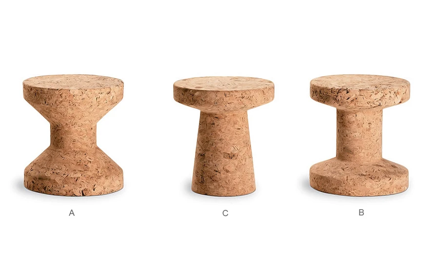 Three small friends, robustly built, stable, individual in character and lovable in appearance, that’s the Cork Family. Whether as side tables or as stools, the three different brothers benefit from the advantageous properties of the natural material cork – it is comparatively light, enormously tough and has a pleasant soft feel. Available in three models.