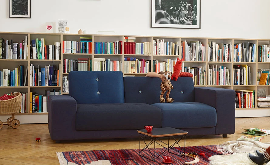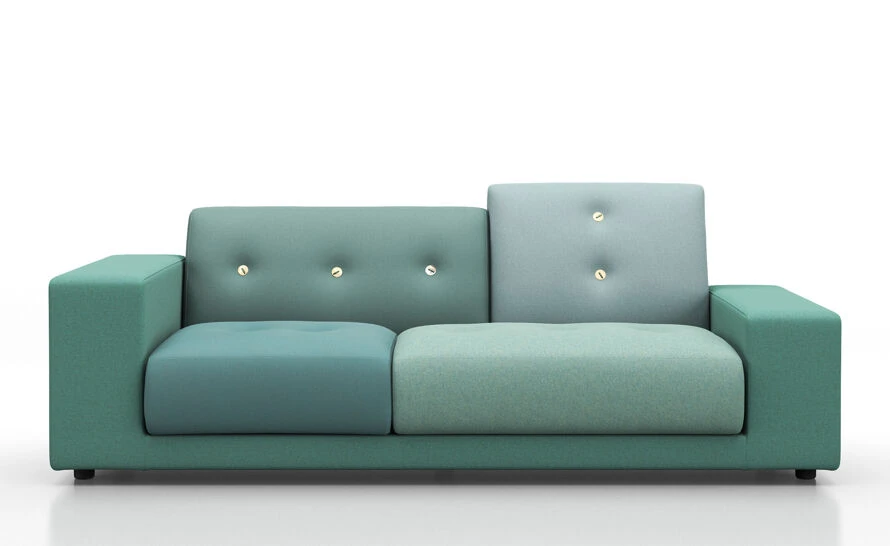 The upholstered cushions and body of the sofas are covered with fabrics in carefully coordinated hues and weaves: shades of green, red or golden yellow. In place of standard upholstery fabrics, textiles developed exclusively for Vitra by Hella Jongerius are used as cover materials.