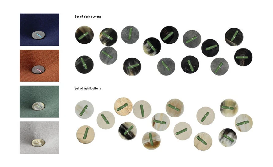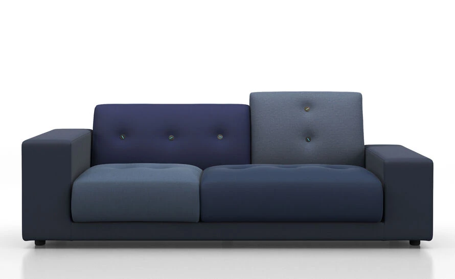A striking detail is added by the buttons, which were conceived by Jongerius as a collage of colored plastic, aluminum and leather. They not only provide an attractive contrast to the soft woven fabrics, but also facilitate the easy removal of the upholstery covers for cleaning, thanks to a simple fastening device. Please note: cover material is recommended for residential use only. The designation, ‘left’ and ‘right’ refer to the perspective when viewing the sofa from the front.