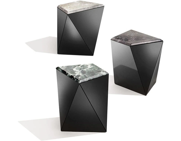 The Washington Prism side table is constructed of 3/4″ Baltic Birch plywood panels covered in plastic color core laminate which maintains color throughout so vibrancy is maintained from edge to edge. The panels are assembled together using poplar wood corner blocks. Top is available with a choice of marble options with a polished or satin coating.
